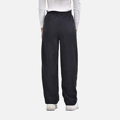 Corduroy Trousers with Elastic Waistband & Adjustable Drawstring (Size-S) - Brown