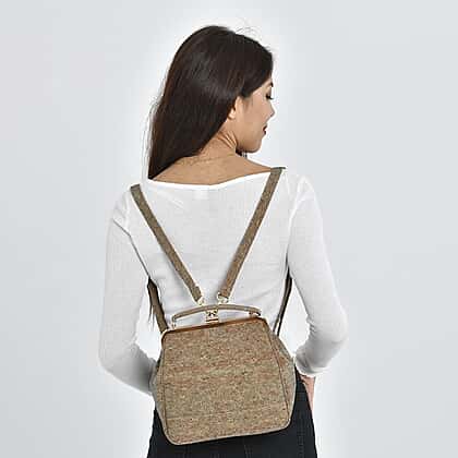 Cork Backpack with Handle Drop or Detachable Shoulder Strap - Coffee