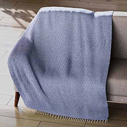 Cotton Chevron Patterned Throw Blanket (Size 170x130 cm) - Blue