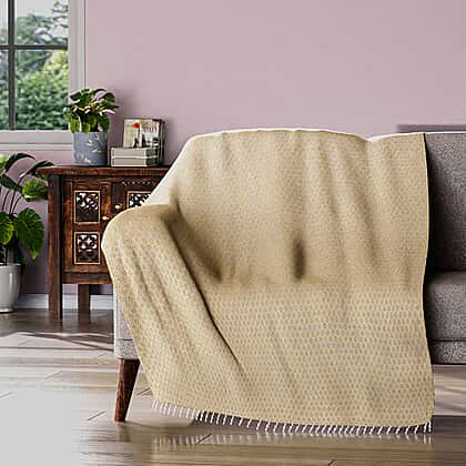 Cotton Chevron Patterned Throw Blanket (Size 170x130 cm) - Yellow