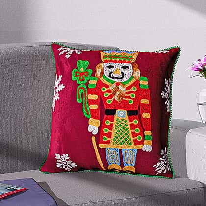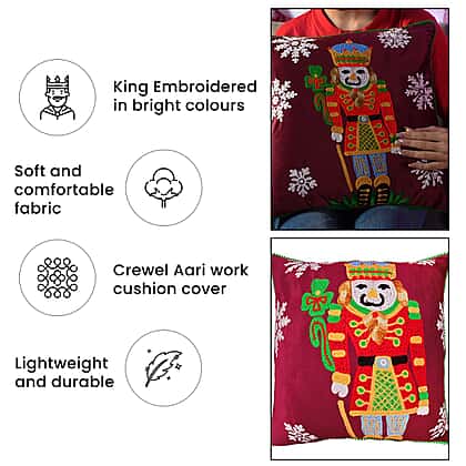 Cotton Christmas King Size Embroidered Cushion Cover (Size 45 Cm) - Red Wine