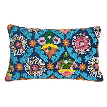 Cotton Floral Cushion Cover (Size 30x1 cm) - Blue & Multicolor