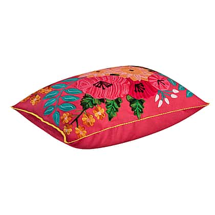 Cotton Flower Embroidered Lumber Cushion Cover (Size 50x30 Cm) - Pink & Multi