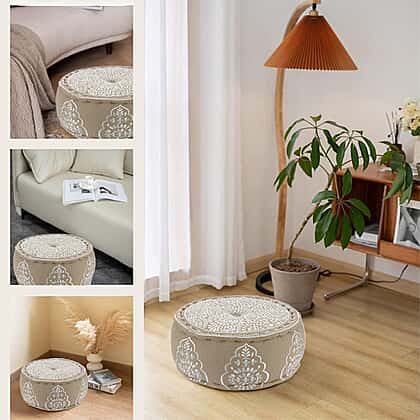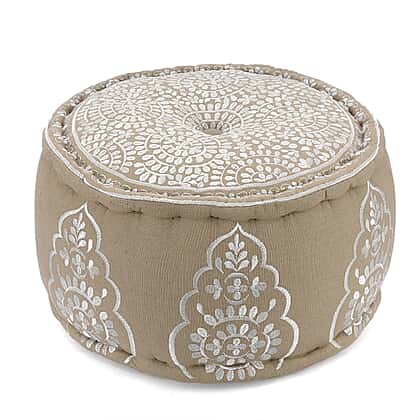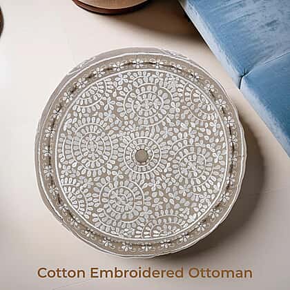Cotton Ottoman With Embroidery (Size 40x25 cm) - White