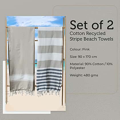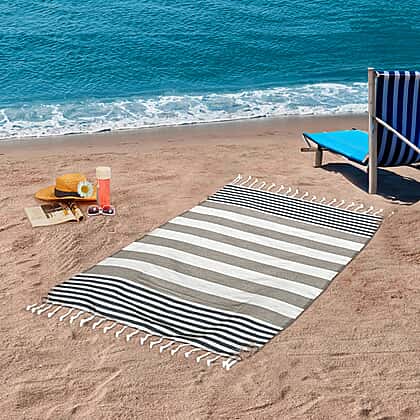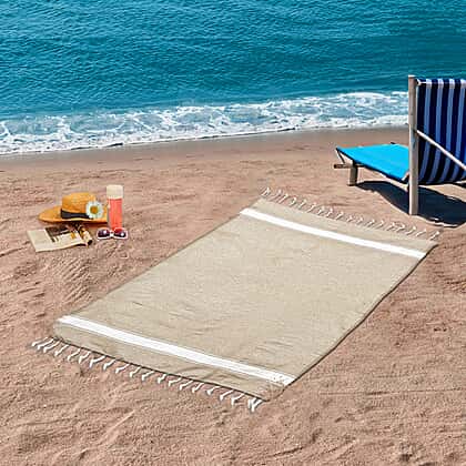 Cotton Stripe Towel (Size 90x170 cm) - Beige