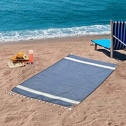 Cotton Stripe Towel (Size 90x170 cm) - Navy