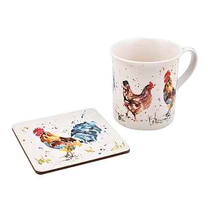 Bring a touch of the countryside to your home with the Country Life cock, hen mug and coaster set. This charming set is the perfect addition for anyone who loves country living and traditional country charm. The cups are beautifully decorated with whimsical illustrations of a cock and hen and are made from high-quality ceramic to ensure they're both durable and long-lasting. In addition, the included coasters feature a coordinating design, making this set the perfect choice for anyone who loves to entertain in style. So why wait? Get yours today and bring a little bit of the countryside into your home!