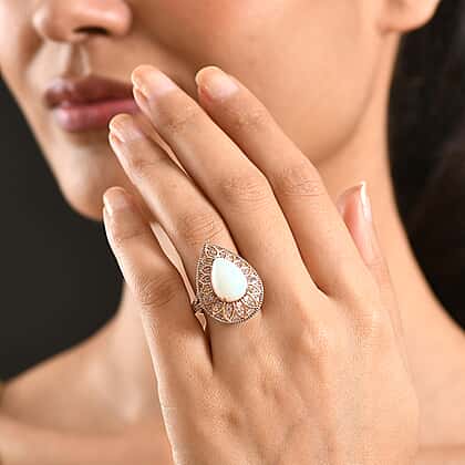 Designed to mesmerise from every angle, this Couture Collection ring features AAA Natural Ethiopian Opal and Natural Pink Diamond, showcasing exceptional detail and colour. The luminous Ethiopian opal displays captivating flashes of light, framed by intricate natural pink diamond accents that add warmth and brilliance. Crafted in 925 sterling silver with rhodium and rose gold overlay, the setting enhances contrast while offering a refined finish. The elevated pear-shaped design creates a strong presence on the hand, while the detailed under-gallery adds artistry beneath the surface. Bold, expressive and beautifully crafted, this ring brings colour and distinction to any jewellery collection.