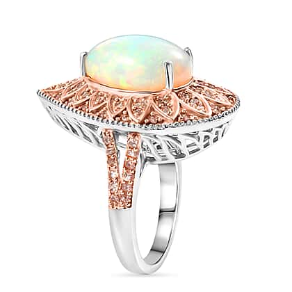 Couture Collection - AAA Natural Ethiopian Opal (3.35ct) & Natural Pink Diamond (0.65ct) Ring in Rhodium Overlay & Rose Gold Overlay Sterling Silver 4.00 Ct.