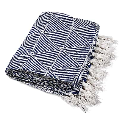 Refresh your space with the serene elegance of this 100% soft cotton triangle weaved throw blanket by Homesmart in light blue. This beautifully woven piece blends timeless comfort with understated style, adding a cool and tranquil feel to your home. Made from premium cotton, it features a distinctive triangle weave and soft fringed edges for an effortless finish. Whether used as a lightweight blanket or a stylish accent, this throw enhances any room with subtle sophistication.