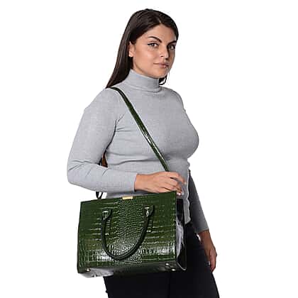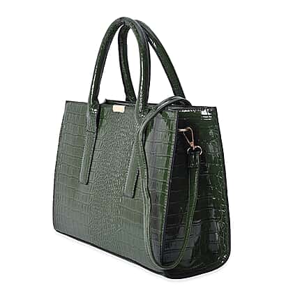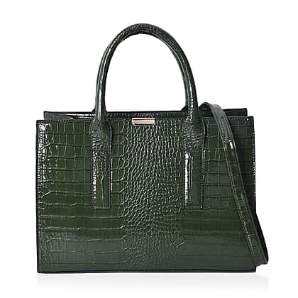 Croc Embossed Tote Bag with Detachable Shoulder Strap (Size 32x25x13 Cm) - Green