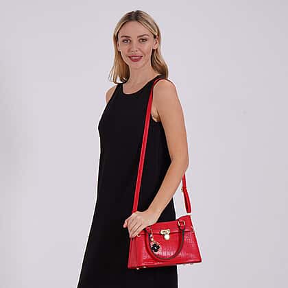 Crocodile Embossed Crossbody Bag with Shoulder Strap - Red