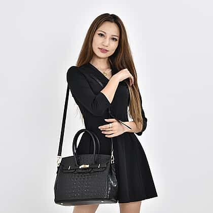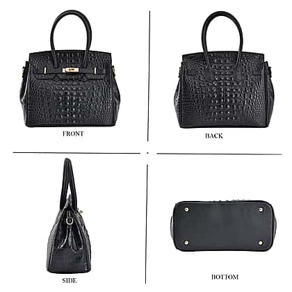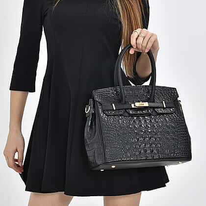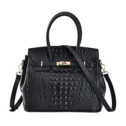 Designer Closeout Deal - Luxury Crocodile Embossed Genuine Leather Convertible Handbag with Detachable Long Strap - Royal Blue
