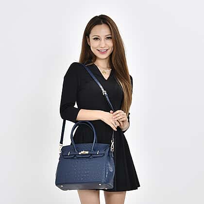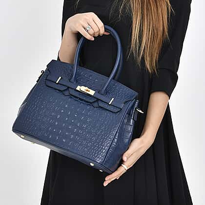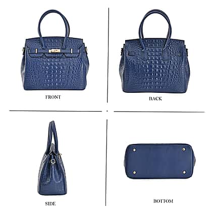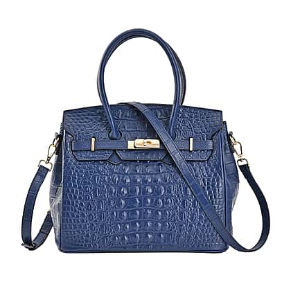 Designer Closeout Deal - Luxury Crocodile Embossed Genuine Leather Handbag with Detachable Long Strap - Royal Blue
