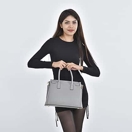 Genuine Leather Solid Crossbody Bag with Handle Drop and Shoulder Strap- Grey