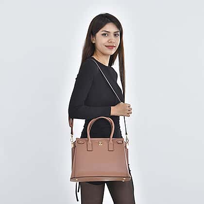 Bring home the Genuine Leather Solid Crossbody Bag with Handle Drop and Shoulder Strap. Crafted with high-quality leather, this bag is sturdy and durable. The bag is designed with a handle drop and shoulder strap, and has 2 compartments with 1 zip closure. The polyester lining of the bag provides a secure layer inside the bag. The bag comes in a stunning green colour and the size of the bag is 34x24x14 cm.