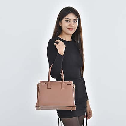 Genuine Leather Solid Crossbody Bag with Handle Drop and Shoulder Strap - Pink