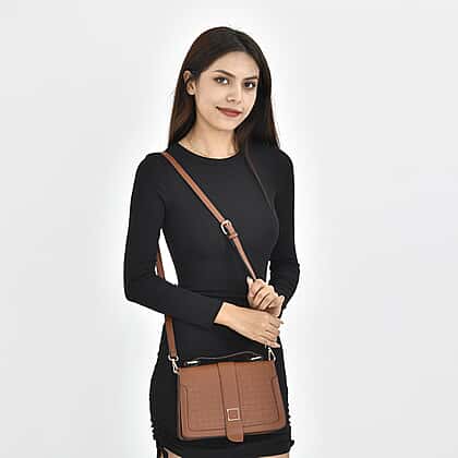 Complete your casual looks in chic style with this crossbody bag with emobosed pattern.. The bag gets a premium finish from semi PU, while an embossed brick pattern adds texture to exude an appealing air. The bag features a 140-cm detachable strap and dial handle drop, just enough to carry your day’s essentials. The inside is polyester-lined and has a zip pocket to carry small items with a magnetic flap closure. With a solid colour scheme, the bag can be matched with any outfit.