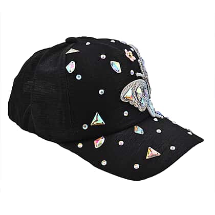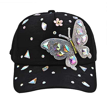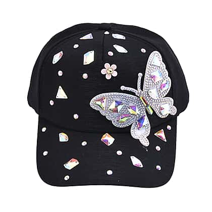 Crystal Butterfly Pattern Cap (Size 58 cm) - Black
