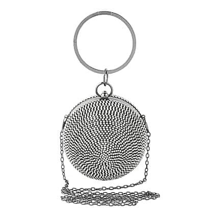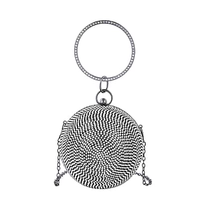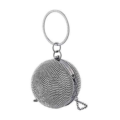 Crystal Decorative Ball Clutch Bag with Chain Strap - Black