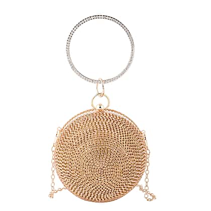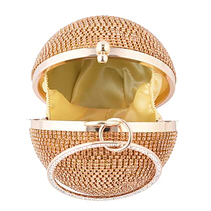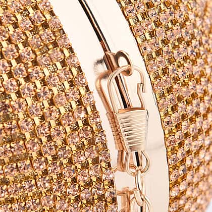 Crystal Decorative Ball Clutch Bag with Chain Strap (Size 14 Cm) - Champagne