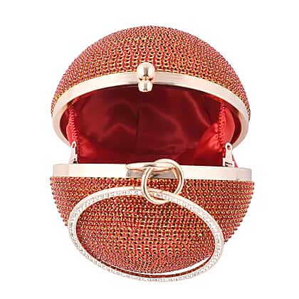 Crystal Decorative Ball Clutch Bag with Chain Strap - Red