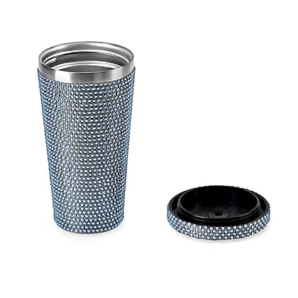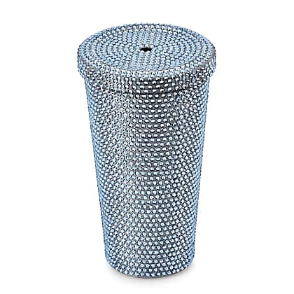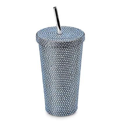 Crystal Encrusted Stainless Steel Insulated Cup with Straw & Lid (Capacity 18oz) - Blue