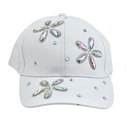 Crystal Floral Pattern Cap (One Size) - White