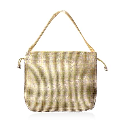 Crystal Studded Drawstring Tote Bag in Gold and White Colour Size 21x21.5x4 Cm
