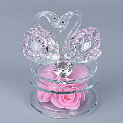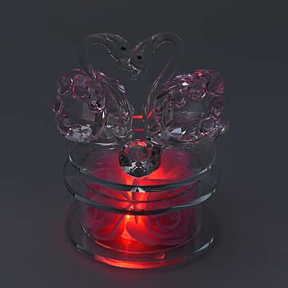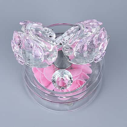 Crystal Swan LED Light with Floral Rotating Base (Size 11x9 Cm) - Pink