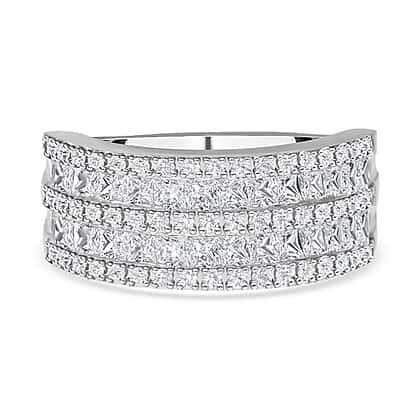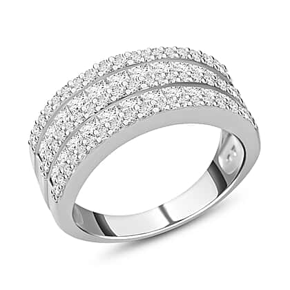 Cubic Zirconia 3 Row Half Eternity Ring in Rhodium Overlay Sterling Silver