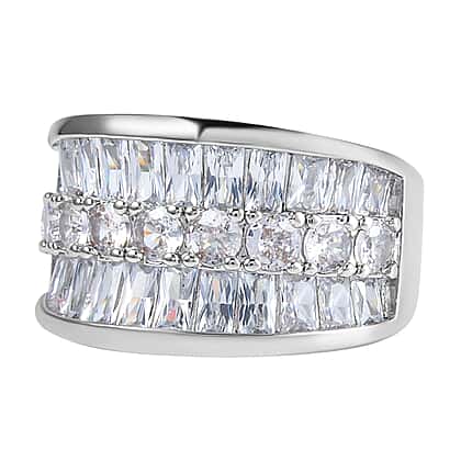 Cubic Zirconia 3 Row Half Eternity Ring in Silver Tone