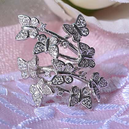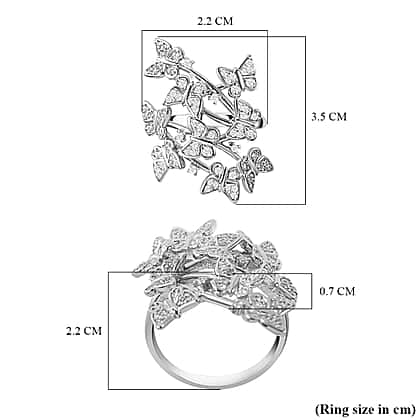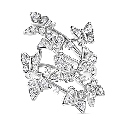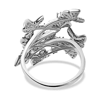 Cubic Zirconia Butterfly Open Ring in Rhodium Overlay Sterling Silver, Silver Wt. 5.87 Gms