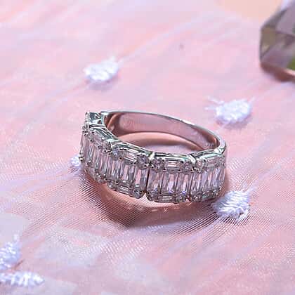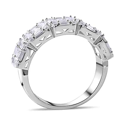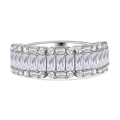 Cubic Zirconia Half Eternity Ring in Rhodium Overlay Sterling Silver