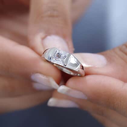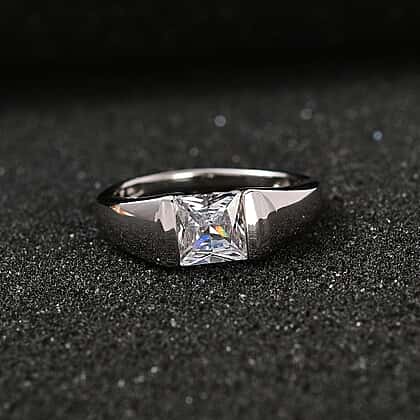 Cubic Zirconia Solitaire Ring in Platinum Overlay Sterling Silver