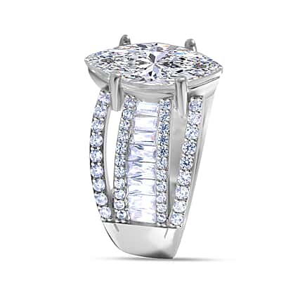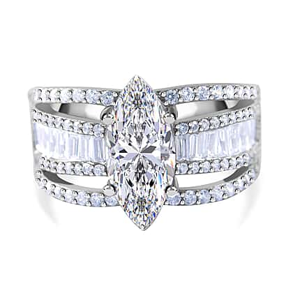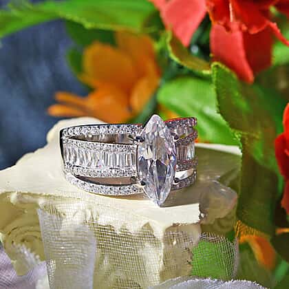 Cubic Zirconia Three Row (Marquise Cut) Ring in Rhodium Overlay Sterling Silver