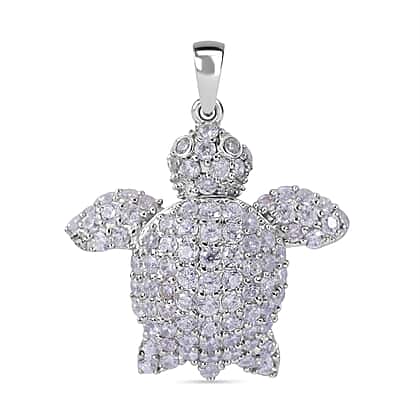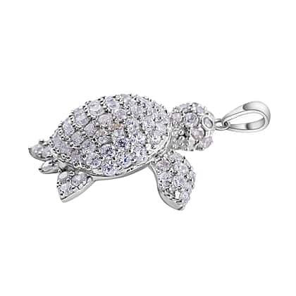 Cubic Zirconia Turtle Pendant in Rhodium Overlay Sterling Silver