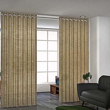Set of 2 - 100% Cotton Textured Slub Curtain with Eyelets (Size 140x234cm) - Light Brown