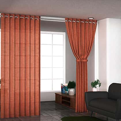 Set of 2 - 100% Cotton Textured Slub Curtain with Eyelets (Size 140x234cm) - Terracotta (55X92 inch)