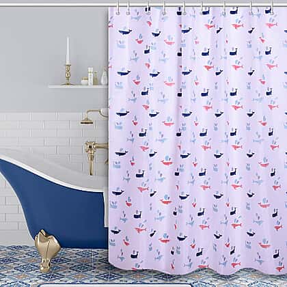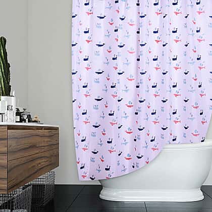 White Waterproof Shower Curtain with Multi Colour Whale Pattern and 12 Hooks Size 180x180 cm