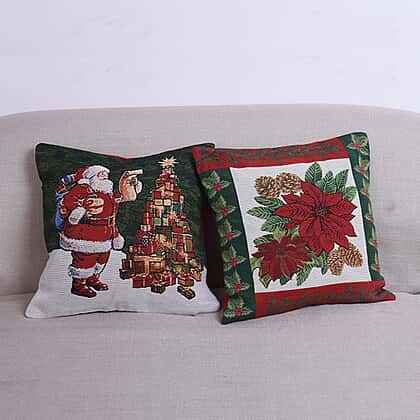 Christams Decoration- 2 Piece Set Cushion Cover (Size 45x45cm) - Santa and Pine Cone