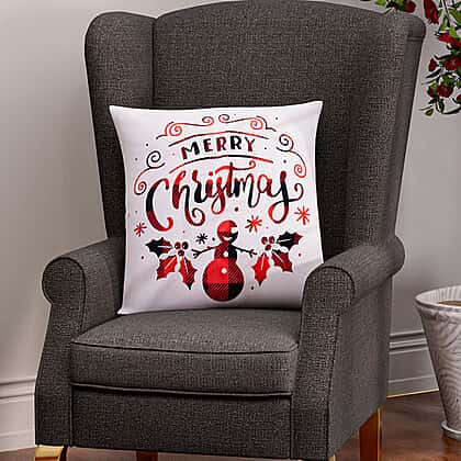 Merry Christmas Printed LED Cushion Cover with Filling - White