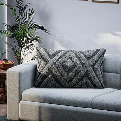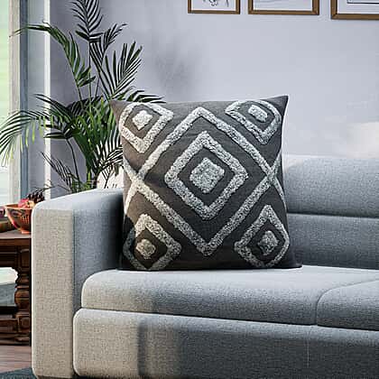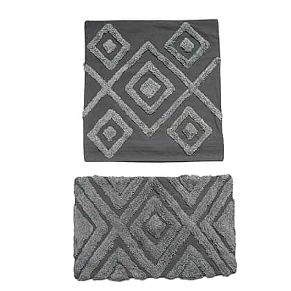 Set of 2 - 100% Cotton Cushion Cover with Tufting Work - Grey