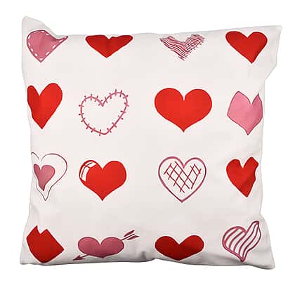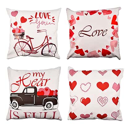 Set of 4 - Love Theme Cushion Cover (Size 40 Cm) - White and Red