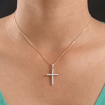 Luxuriant Lab Grown Diamond (SI-GH) Cross Pendant with Chain (Size 20) in 18K Vermeil Rose Gold Plated Sterling Silver 0.24 Ct.