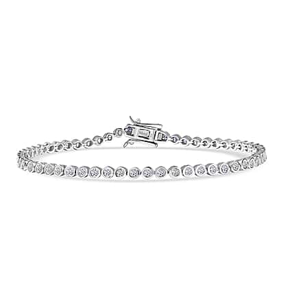 Luxuriant Lab Grown Diamond (SI-GH) Tennis Bracelet 1 Row (Size 7.5) with GB Lock Box in Rhodium Overlay Sterling Silver 2.07 Ct, Silver Wt. 8.06 Gms.
