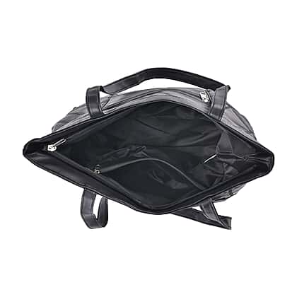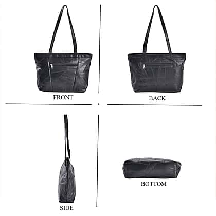 Sheepskin Leather Patterned Shoulder Bag (Size 37x25x9 cm) - Black & Multicolor
