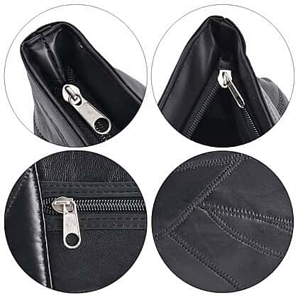 Elevate your style with this elegant Patchwork Sheep Leather Shoulder Bag, designed for both functionality and sophistication. Made from premium sheepskin with a unique patchwork design, this bag adds a refined touch to any outfit. Adding PU trim and a leather bottom enhances its durability and structure. Perfect for formal events or casual outings, it seamlessly complements various looks. Crafted using recycled leather, it’s a sustainable and eco-friendly choice. With Size 37x25x9cm, the spacious main zipped compartment ensures secure storage for all your essentials, combining practicality with timeless style.