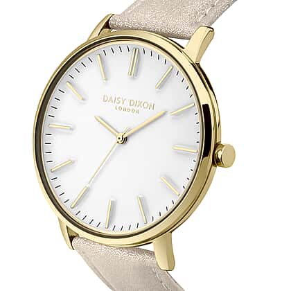 Daisy Dixon Harper Nude Metallic Strap With Overside Gold Case & White Dial Ladies Watch
