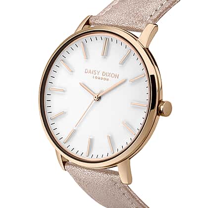 Daisy Dixon Harper Nude Metallic Strap With Overside Rose Gold Case & White Dial Ladies Watch